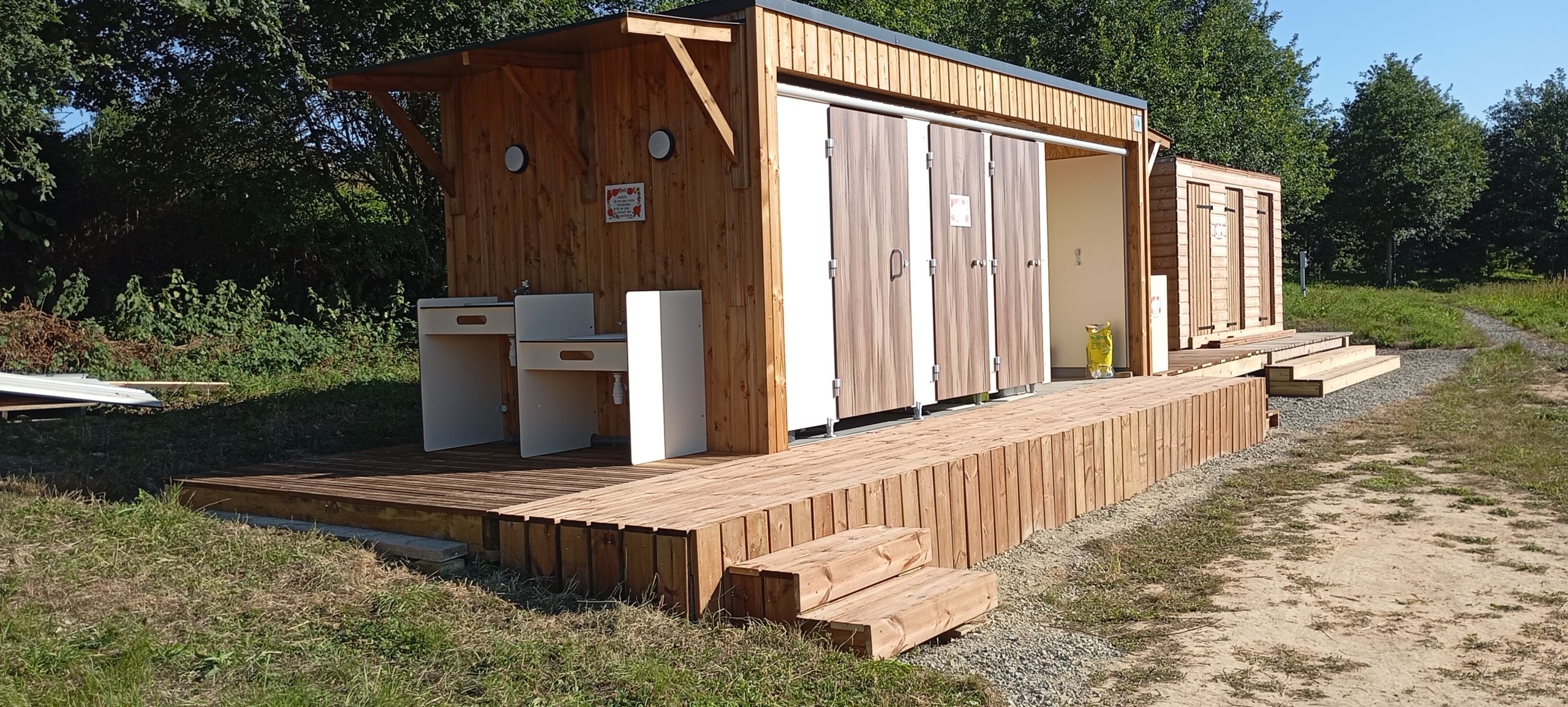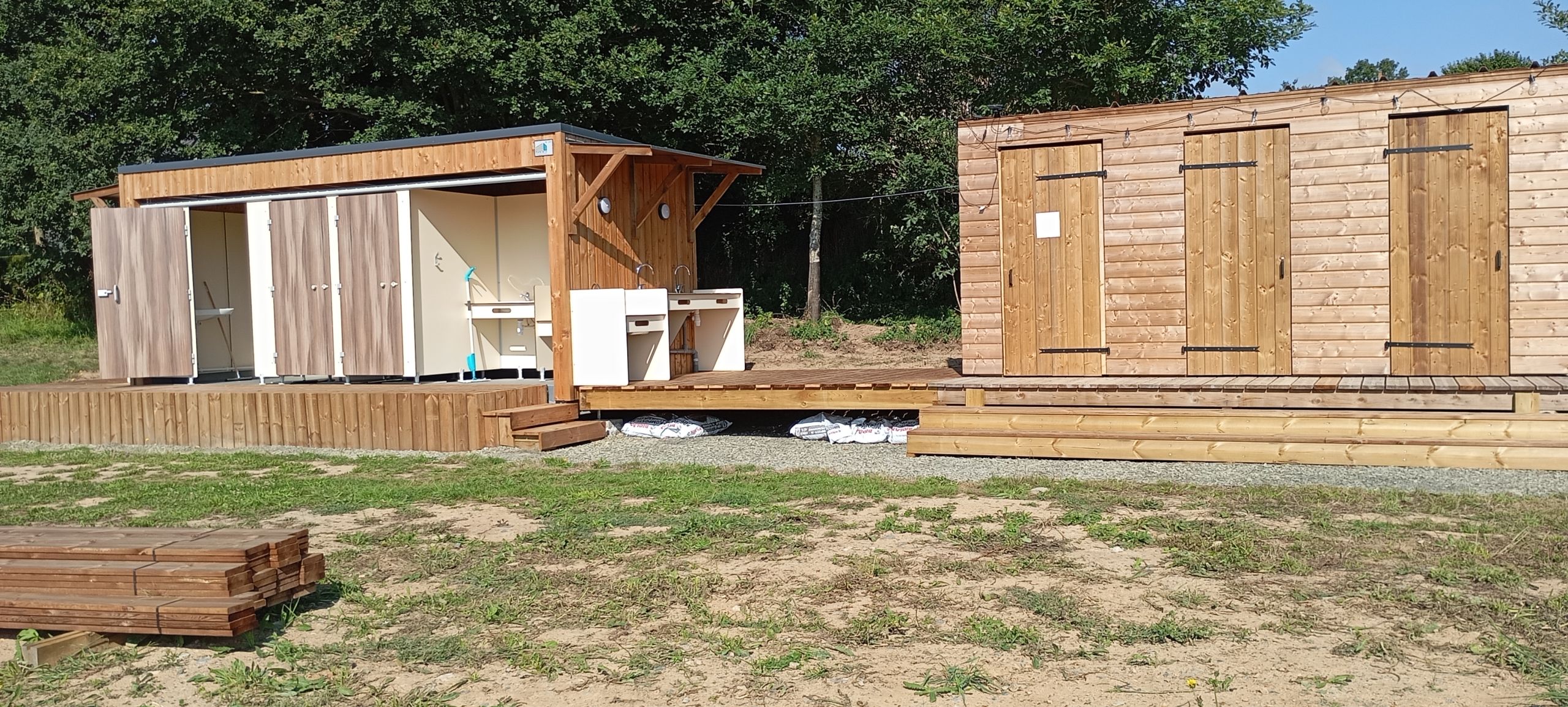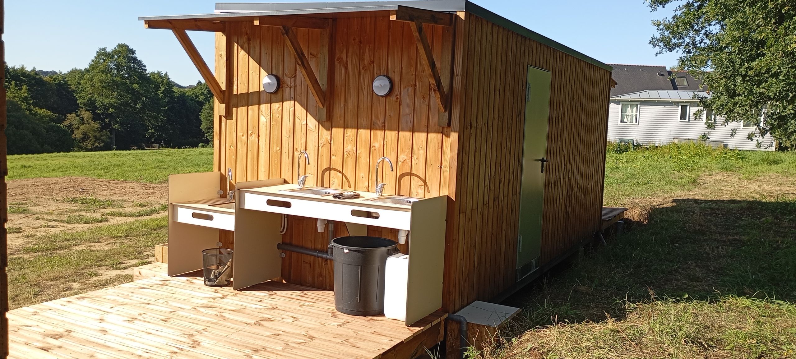 - Un bloc sanitaire avec 3 douches et 3 lavabos adaptés à la taille des enfants.