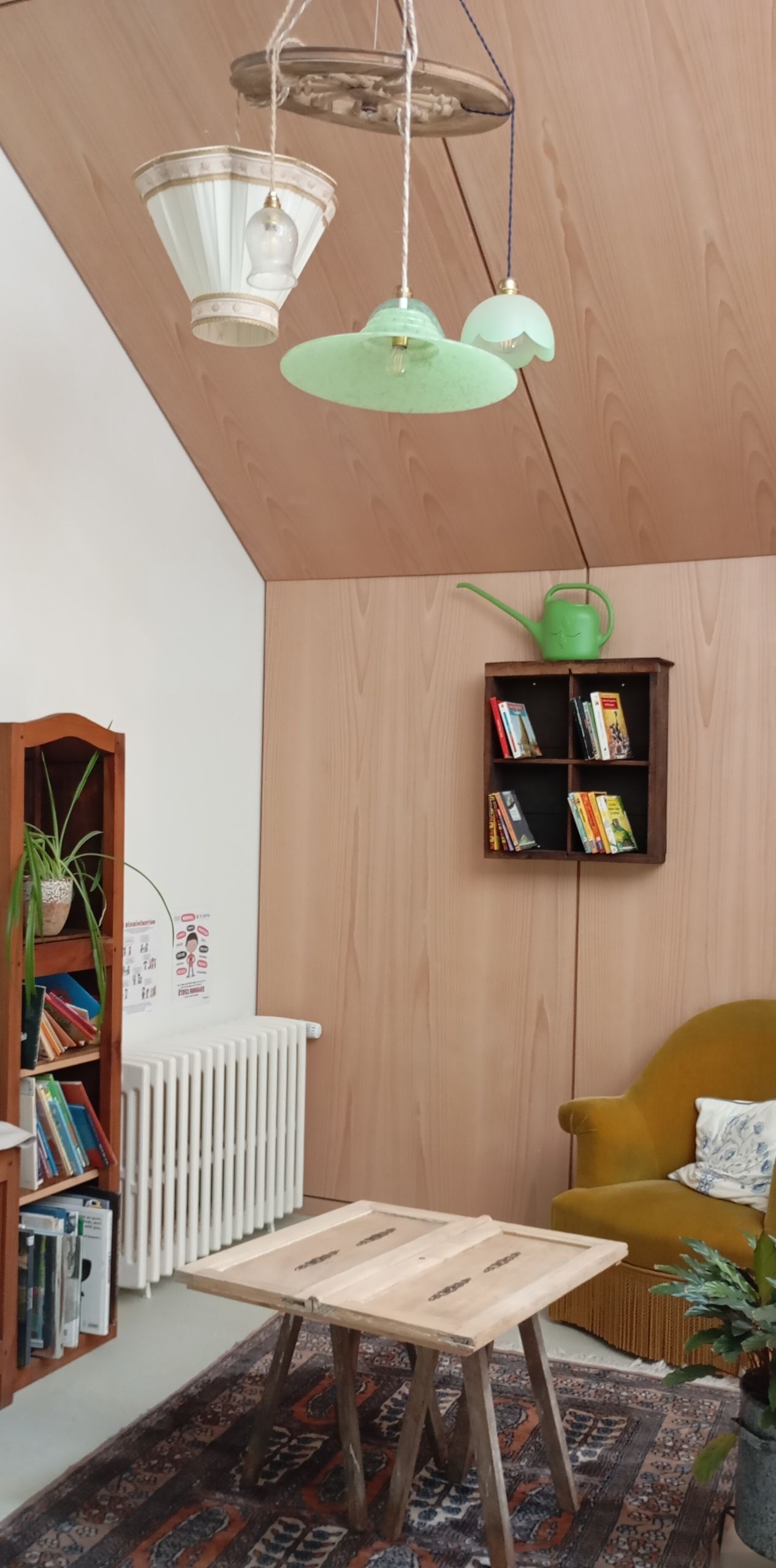Les chambres et pièces de vie ont été meublées avec les circuits courts de réemploi : appel à dons de meubles, recyclage, revalorisation avec une designeuse d’intérieur spécialisée en « upcycling » : réemploi et revalorisation de mobilier : Morgane Fraga.